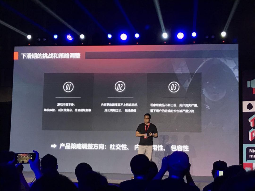 在下滑期的时候其实是有一些挑战的,首先是 游戏内容本身 ,其实这个产品本身是韩国开发的,然后拿到中国来运营。韩国的用户习惯更强调自己的成长,但是在社交性、在玩法的多样性上就比较弱,所以这个产品在本身的设计上就有一定的先天劣势,在竞技类产品爆发的时候,这个弱点就更大了。玩家发现在游戏里没有足够多的朋友,也没有足够多重复的PVP的玩法,只能不停地去刷图、刷装备,是一个很漫长的过程。